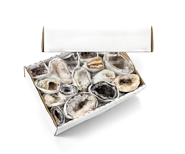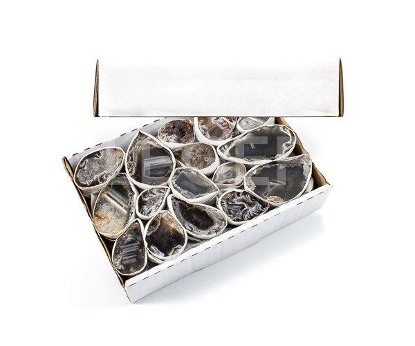 Caixas com Minerais em Geodo de Ágata em Bruto - 13F