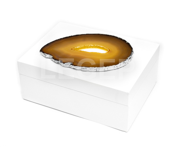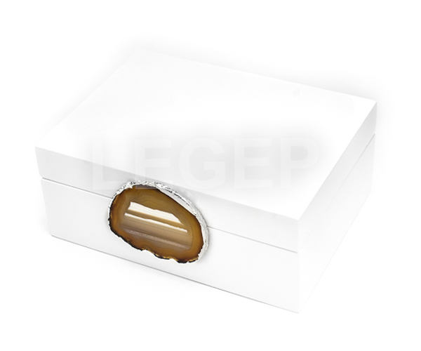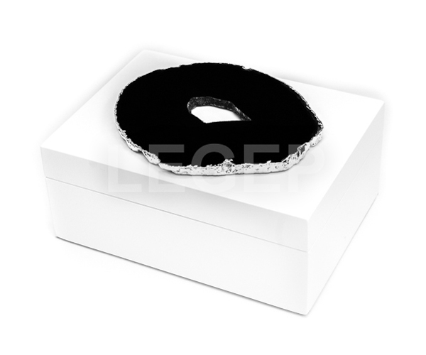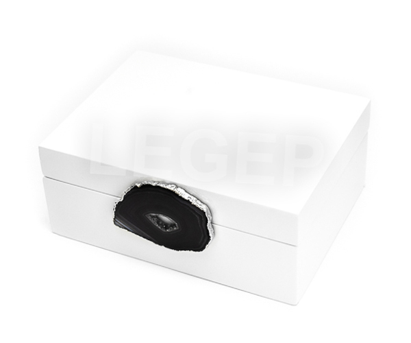 Caixa em MDF (Medium Density Fiberboard) laqueada.