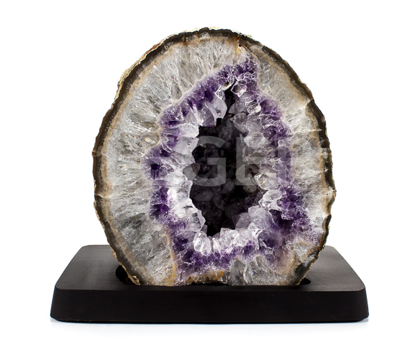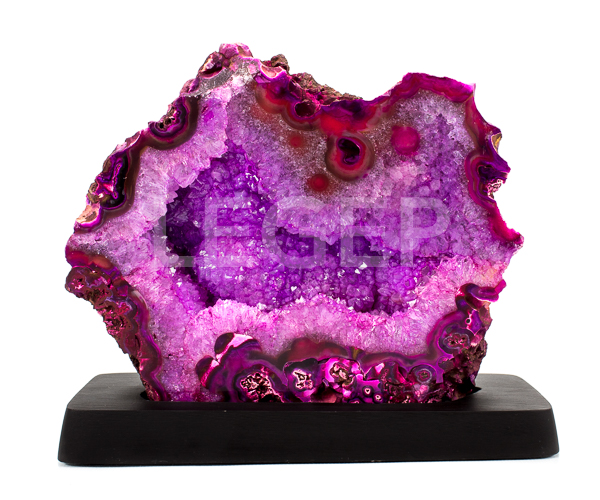 Geodo em Ágata Roxa com Base de Madeira - Qualidade EX