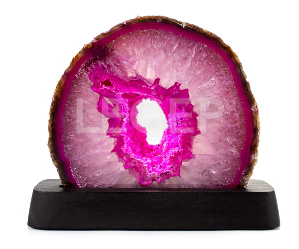 Geodo em Ágata Rosa com Base de Madeira - Qualidade 01